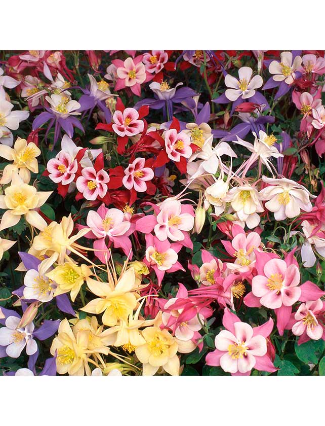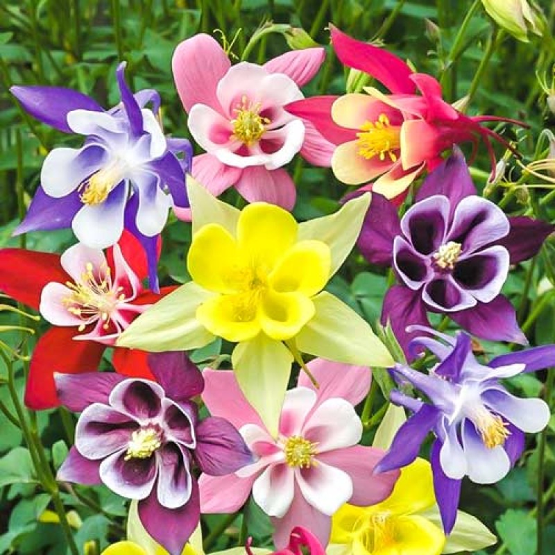 Семена аквилегии обыкновенной смесь окрасок – отличное решение для украшения садовых объектов. Это растение вырастает до 40 см в высоту и, начиная со второго года после посадки, цветет яркими цветами с лепестками различной окраски: