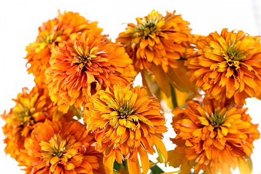 Саженцы и рассада Эхинацеи пурпурной Мармелад (Echinacea purpurea) станут отличным дополнением на солнечной клумбе. Это изумительное растение завоевало сердца цветоводов, уже успевших насладиться красотой махровых, ярких желто-оранжевых цветков. К тому же на них отчетливо видны розовые оттенки, поэтому сорт полностью оправдывает свое «вкусное» название.