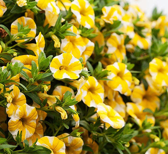 Саженцы калибрахоа Карбет лемон (Calibrachoa Cabaret Lemon) наполнят сад или террасу яркими солнечными бликами многочисленных цветков-граммофончиков.