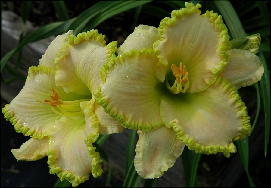Саженцы лилейника гибридного Близард Бей (Blizzard Bay) зацветают крупными, изящными соцветиями в середине августа. Цветки белые с кремовым оттенком и желто-зеленой глазной зоной, и такого же цвета волнистой каймой. Растение в высоту достигает 60 см., прекрасно растет на солнечных или чуть затемненных местах. Лилейник Близард Бей (Blizzard Bay) неприхотлив и устойчив к зимним морозам, благодаря чему пользуется популярностью. Этот сорт часто используют при формировании клумб для озеленения участка.