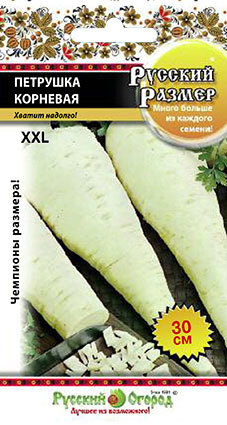 Семена петрушки "Русский размер" высевают прямо в открытый грунт с мая по июль. Всходы должны появиться через 15-20 дней. Сорт петрушки "Русский размер" холодостоек, свето- и влаголюбив. При этом растение не переносит переувлажнения. При должном уходе подземная часть культуры достигает до 30 см в длину. Мякоть белоснежная, сладковатая на вкус. В свежем и засушенном виде корнеплод используют для придания пикантного вкуса и великолепного аромата различным блюдам. Собирают урожай в сентябре — октябре.