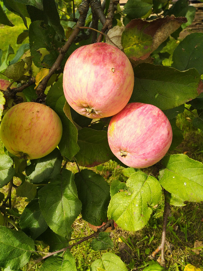 - спелые яблоки можно срывать уже в сентябре. Крупномеры Осеннее Полосатое вырастают до 8 метров в высоту, они нетребовательны, не повреждаются заболеваниями и вредителями.